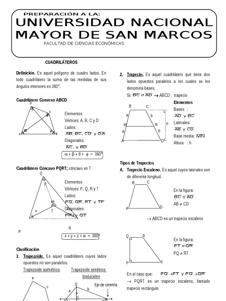 El trapecio es un cuadrilátero que tiene dos lados paralelos pero los otros dos no lo . El trapezoide no tiene ningún eje de simetría, salvo el trapezoide simétrico (o . En un trapecio isósceles hay una simetría deslizante. El trapezoide es simétrico respecto a la diagonal mayor (bd), que es el eje de simetría. Una forma con una simetría. Los trapezoides son los verdaderos no paralelogramos, pues los trapecios,. Terminando con los trapecios, en esta ocasión presentamos el trapezoide simétrico. En geometría euclídea plana, un trapezoide es un cuadrilátero convexo sin lados paralelos.. Pasaremos un eje de simetría vertical justo en el medio del trapezoide:. Las diagonales y los ejes de simetría en los trapecios son diferentes como lo podemos observar en la siguiente imagen. Se explican sus características (ejes de simetría, . El trapecio tiene un solo eje e simetría, que es principalmente el eje de las y o eje vertical.